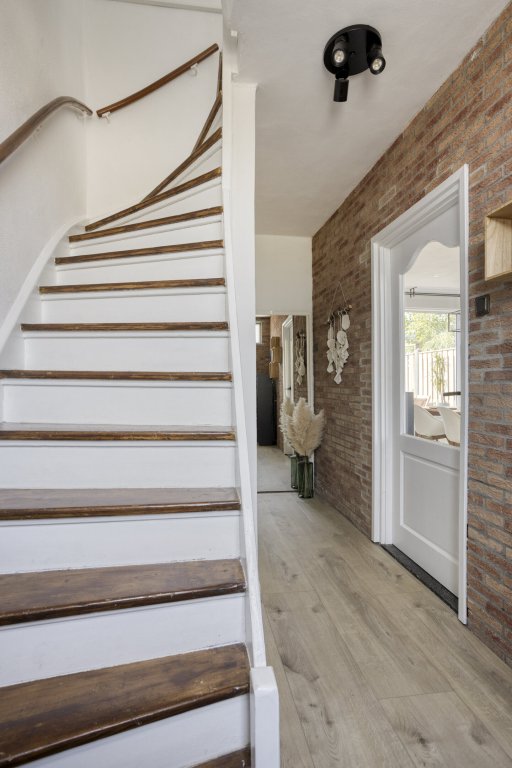 Via de hal, die keurig is afgewerkt, bereikt u alle vertrekken op de begane grond. Hier vindt u de meterkast en een modern toilet.