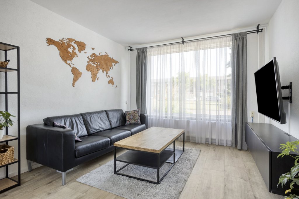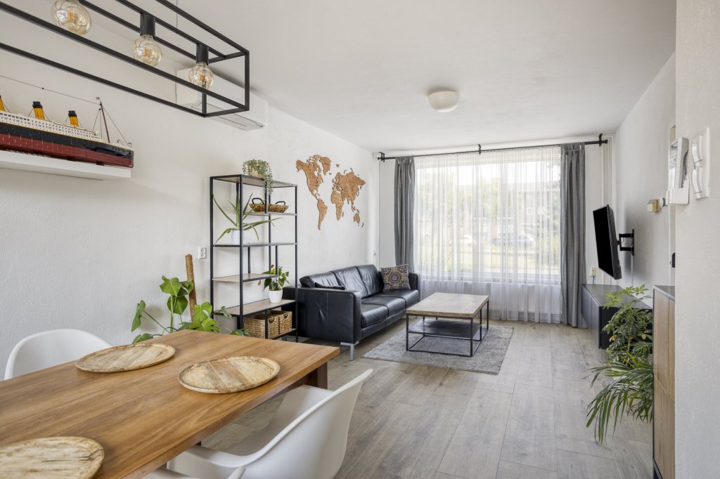 Een ruime, lichte woonkamer met grote ramen die zorgen voor volop daglicht. Er is voldoende plaats voor zowel een royale zithoek als een grote eettafel. De inverter-airconditioning(koud en warm) biedt aangename verkoeling in de zomermaanden. De vloer is stijlvol en onderhoudsvriendelijk afgewerkt, waardoor de ruimte een moderne uitstraling krijgt.