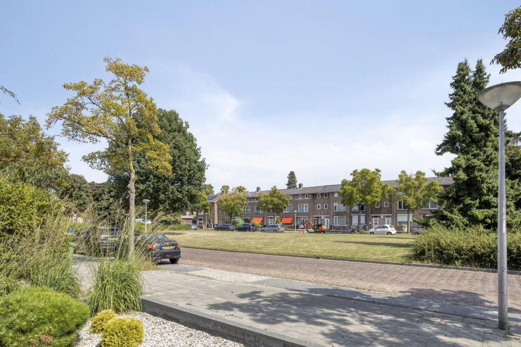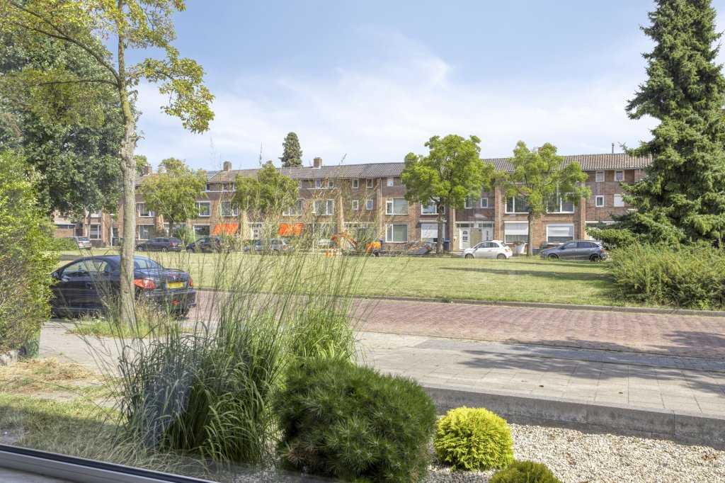 Een verzorgde voortuin met ruimte voor fraaie beplanting zorgt voor een warme en uitnodigende entree. De ligging op de hoek en het vrije uitzicht over het plein maken dit een fijne plek om thuis te komen.