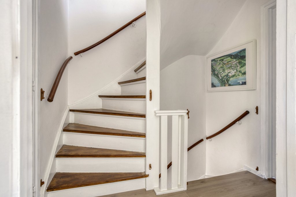 Een lichte overloop met een verzorgde laminaatvloer biedt toegang tot de slaapkamers, de badkamer en wasruimte.