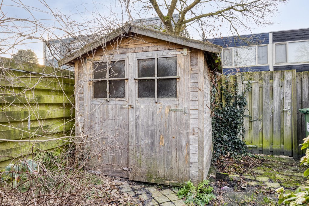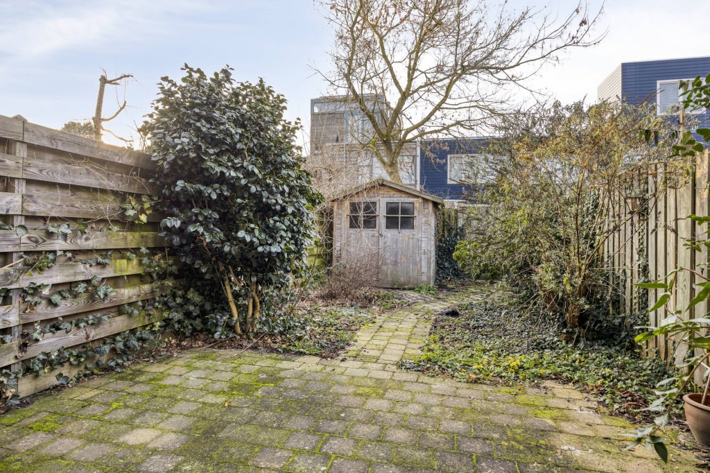 De achtertuin is voorzien van tegelwerk en beplanting, beschikt over een houten berging en is gelegen op het zuiden, waardoor er veel zon aanwezig is.