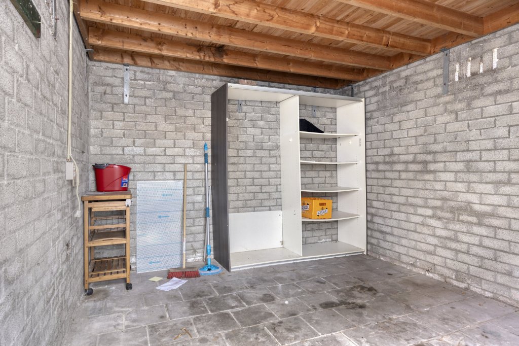 Aangebouwde stenen berging van circa 2 x 2 meter, ideaal voor extra opslag.
