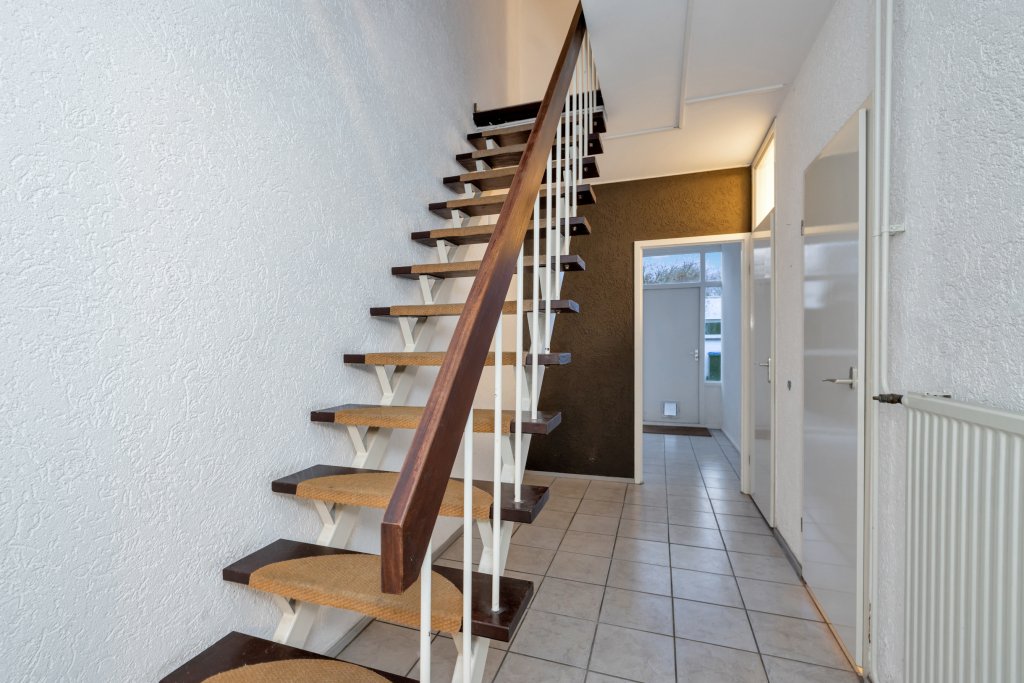 Entree met hal en veel extra bergruimte onder de trap. Toegang tot de inpandige garage (ca.