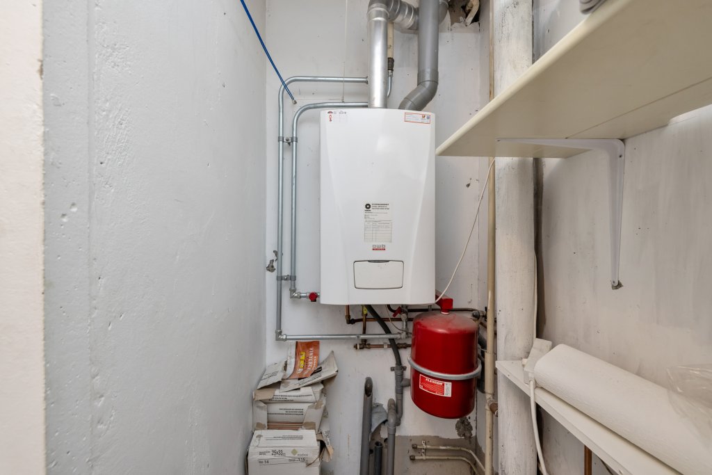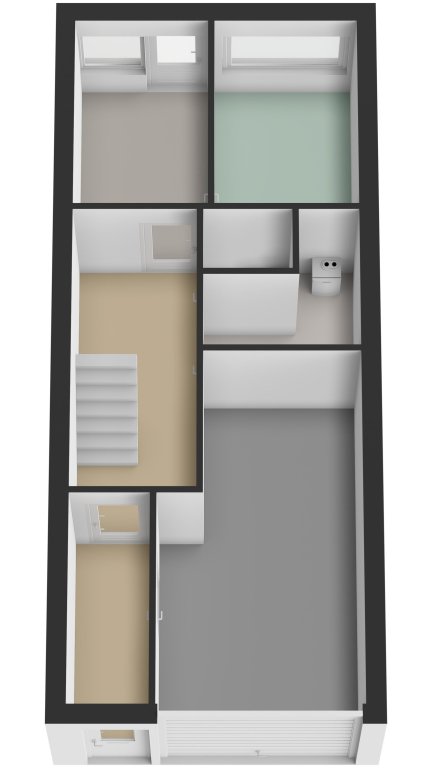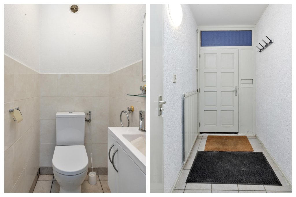 bijkeuken, toilet en CV-/technische ruimte met wasmachine aansluiting.
