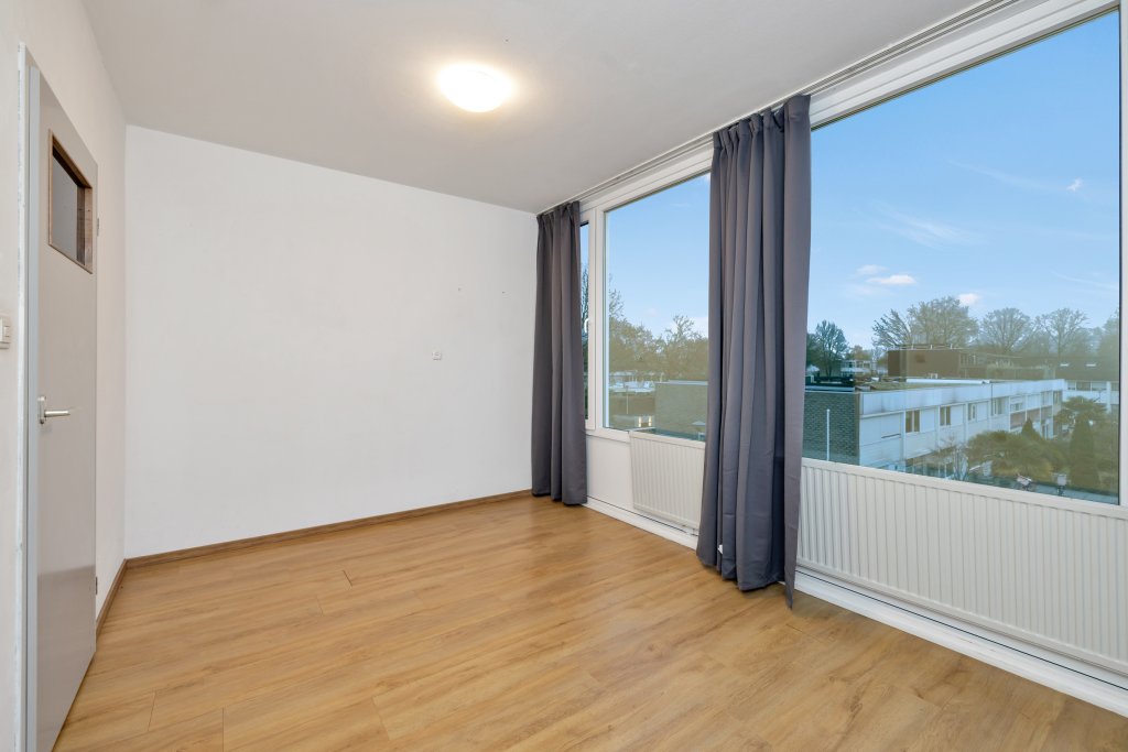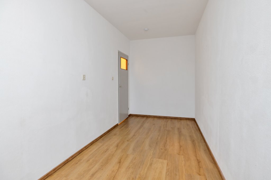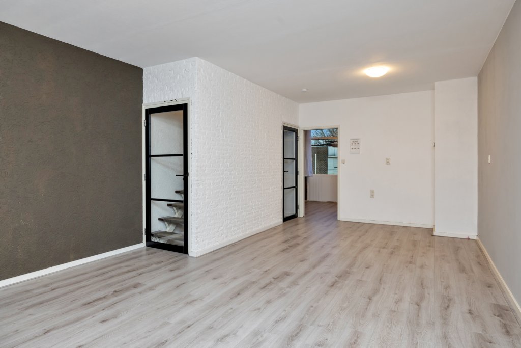 en een nieuwe laminaatvloer. De lichte woon-/eetkamer beschikt over grote raampartijen.