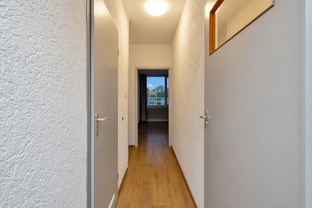 De leefverdieping is in 2025 volledig vernieuwd met moderne zwarte glazen binnendeuren