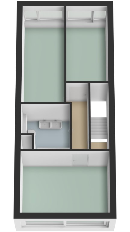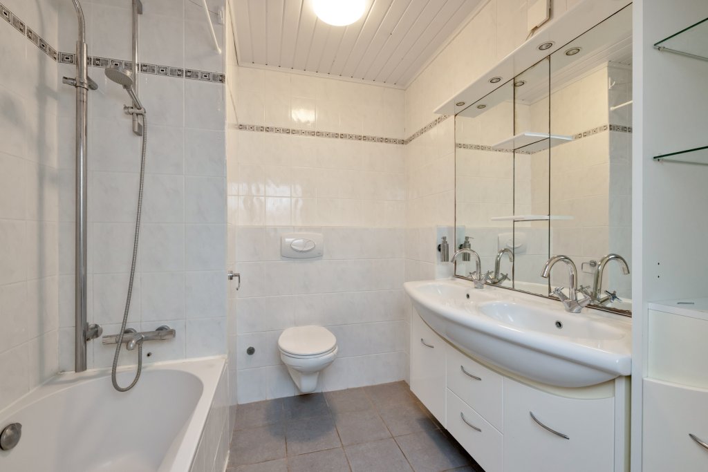 Drie slaapkamers en een badkamer met bad/douche, dubbele wastafel en tweede toilet. In