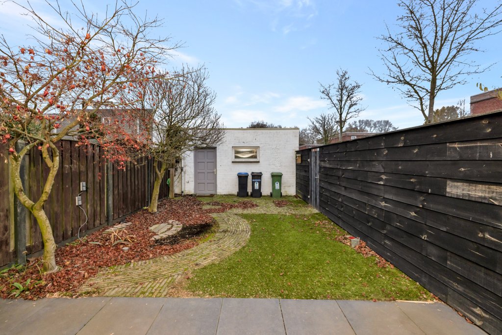 Onderhoudsvriendelijke tuin op het zuiden. Vrijstaande garage van ruim 21 m² aan de
