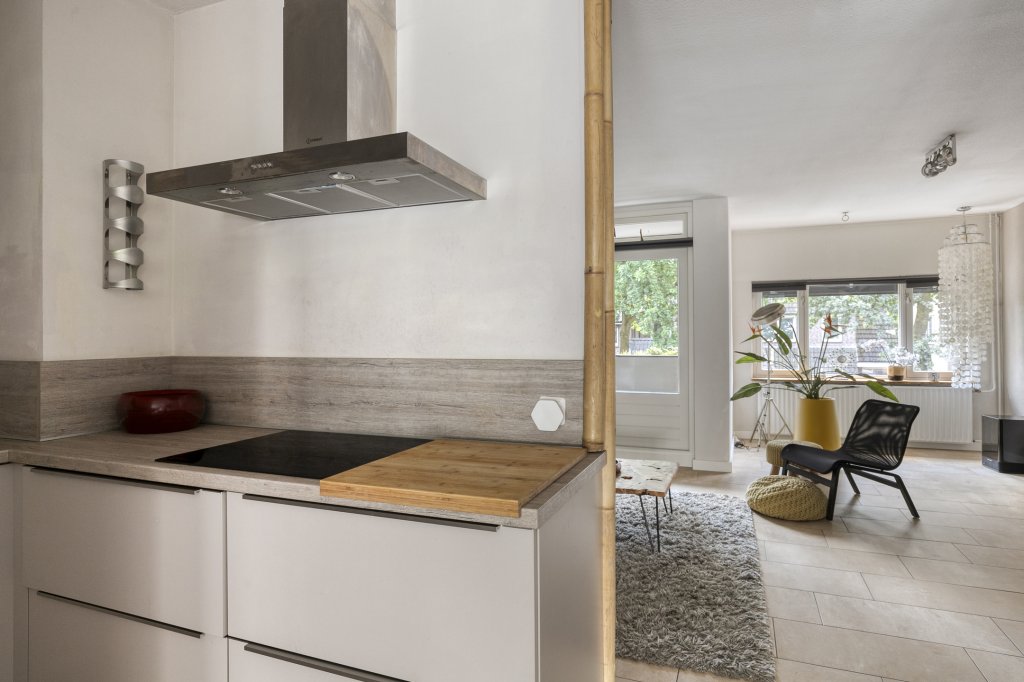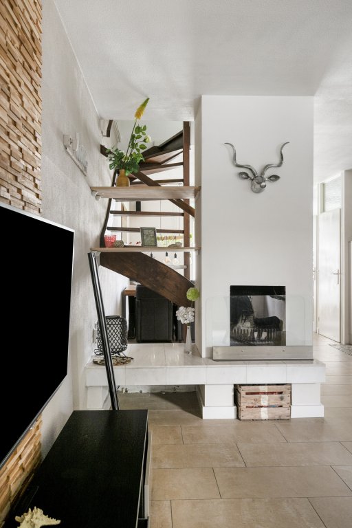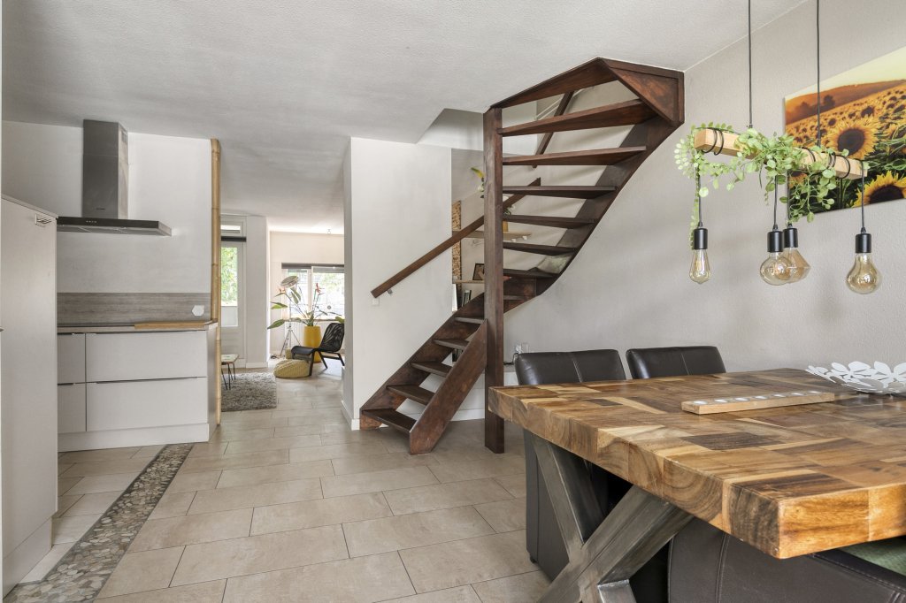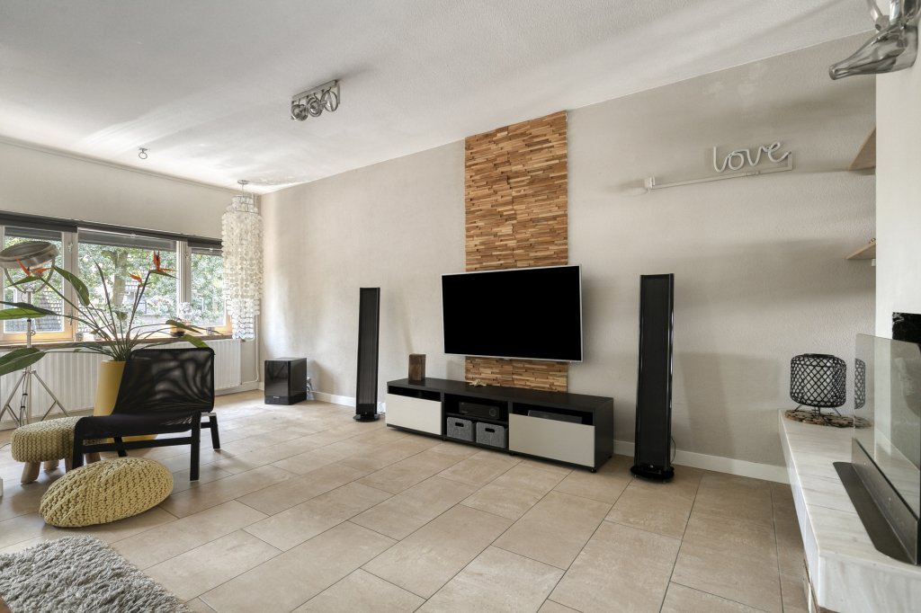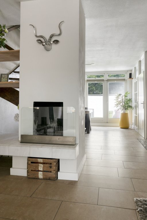 De woonkamer is prettig ingedeeld en biedt voldoende ruimte voor zowel een comfortabele zithoek als een eethoek. De aanwezigheid van een open haard zorgt voor extra sfeer en warmte. De woonkamer staat in directe verbinding met de keuken, wat zorgt voor een open en praktische leefruimte.