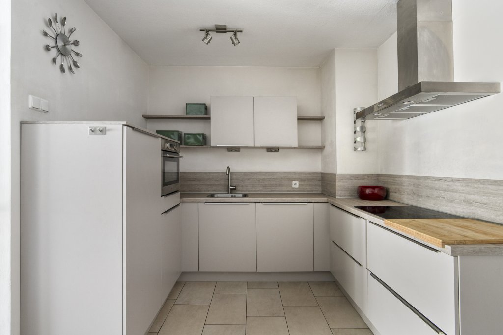 De open keuken is voorzien van diverse inbouwapparatuur, waaronder een oven, inductiekookplaat en een vaatwasser. Dankzij de efficiënte indeling is er volop werk- en opbergruimte, waardoor koken hier zowel praktisch als plezierig wordt!