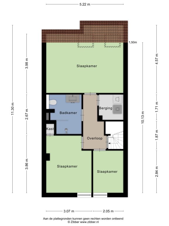 -De hoofdslaapkamer meet ca. 21 m²;